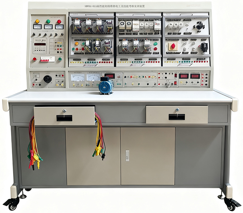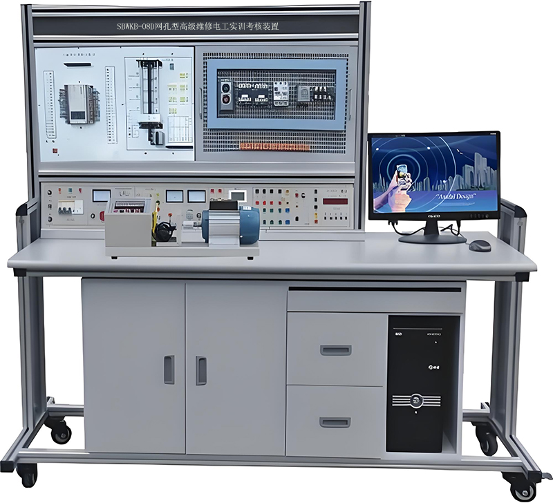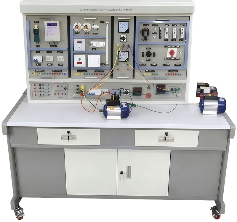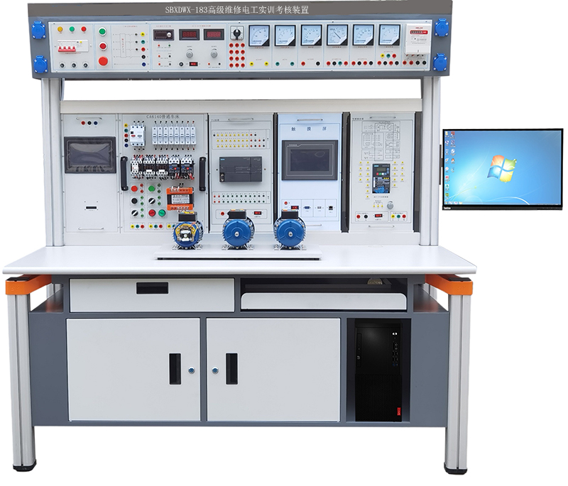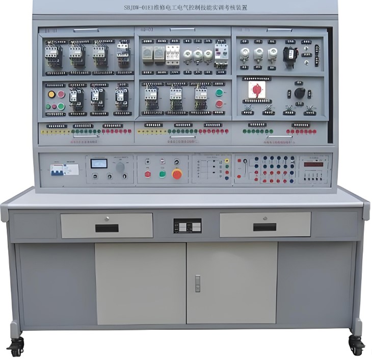 維修電工實訓設備,維修電工實訓臺,維修電工實訓考核裝置適合高等職業學校、中職業學校的機電設備安裝與維修、機電技術應用、電氣運行與控制、電氣技術應用、電子電器應用與維修等專業技術等課程和非機電類專業的必修課程模塊或選修課程模塊《電機控制電路的教學與實訓及從事機械設備和電氣系統線路及器件的安裝、調試與維護及維修電工修理人員。維修電工實訓設備主要掌握,維修電工常識和基本技能,維修電工室內線路的安裝,接地裝置的安裝與維修,常見變壓器的檢修與維護,各種常用電機的拆裝與維修,常用低壓電器及配電裝置的安裝與維修,電動機基本控制線路的安裝與維修,常用機床電氣線路的安裝與維修,電子線路的安裝與調試,電氣控制線路設計,可編程控制器及其應用。