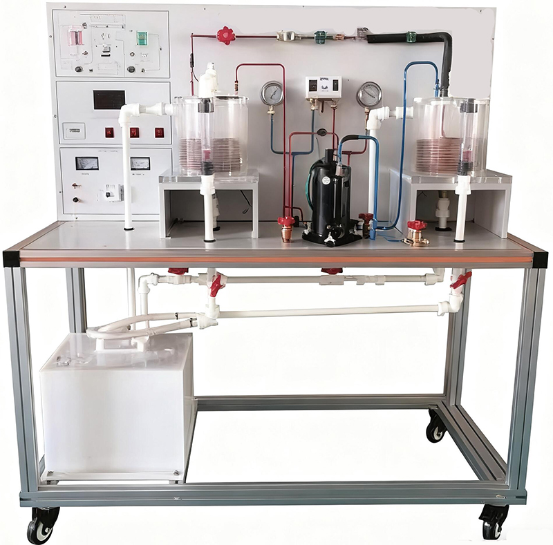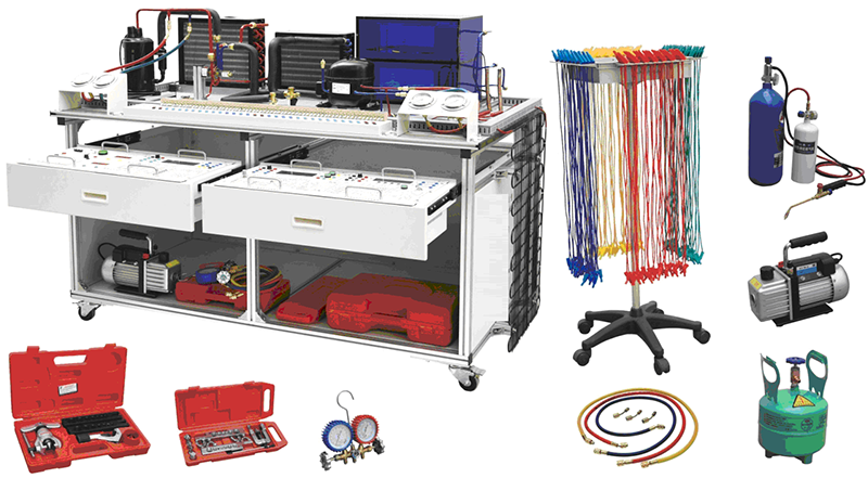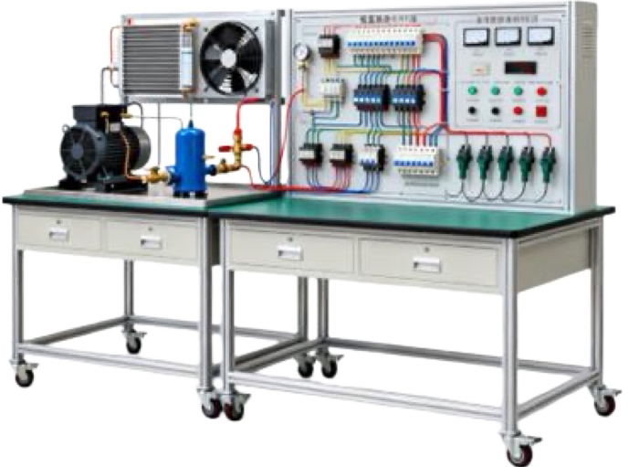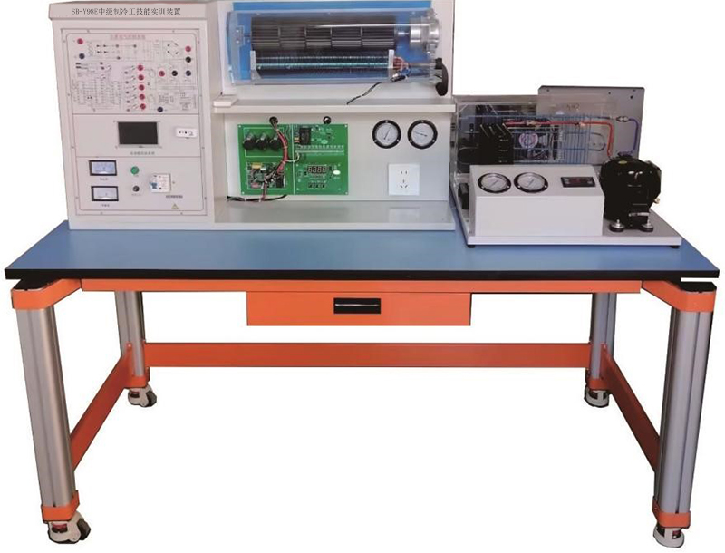 制冷制熱實訓設備,制冷制熱實驗臺,空調實訓臺,制冷制熱實訓室是根據《教育行業標準-電子技術應用專業儀器設備配備標準》勞動和社會保障部發布的《家用電子產品維修工職業技能實訓和鑒定設備技術規范》制冷制熱實訓要求而研制的,制冷與制熱實訓臺適合高職院校、中職學校的應用電子技術、家用電器維修、電子電器應用與維修專業等專業的家用電子產品原理與維修的實訓與教學。